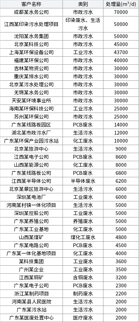 三菱化学MBR膜覆盖市政、化工、半导体、制药、畜牧等多类污水治理场景,国内外有多个项目实现连续13年以上未换膜,行业口碑较好。
